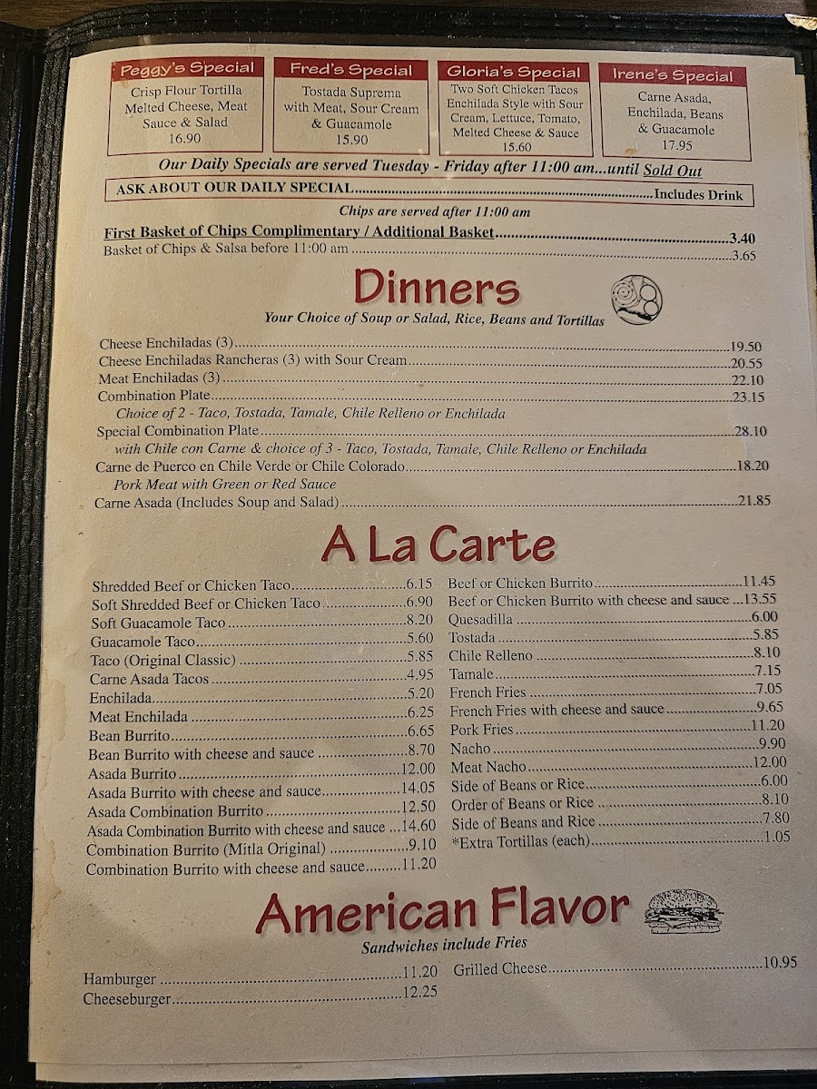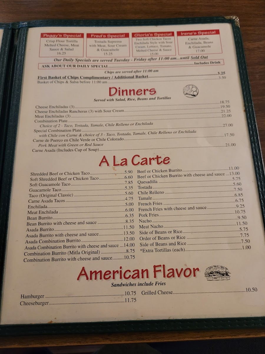 This menu reflects the welcoming atmosphere of Mitla Cafe, a longtime local gathering place where the food feels familiar and comforting, inviting diners to enjoy everyday moments with a balanced mix of authentic Mexican flavors and simple American classics.